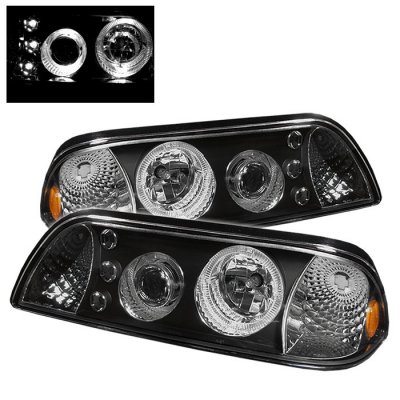 Ford Mustang 1990 Black Euro Headlights with Parking LEDs by Spyder 1 Pair.